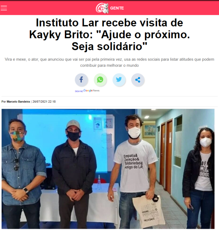 No site IG Gente, Marcelo Bandeira comenta a visita do ator Kayky Brito ao Instituto Lar